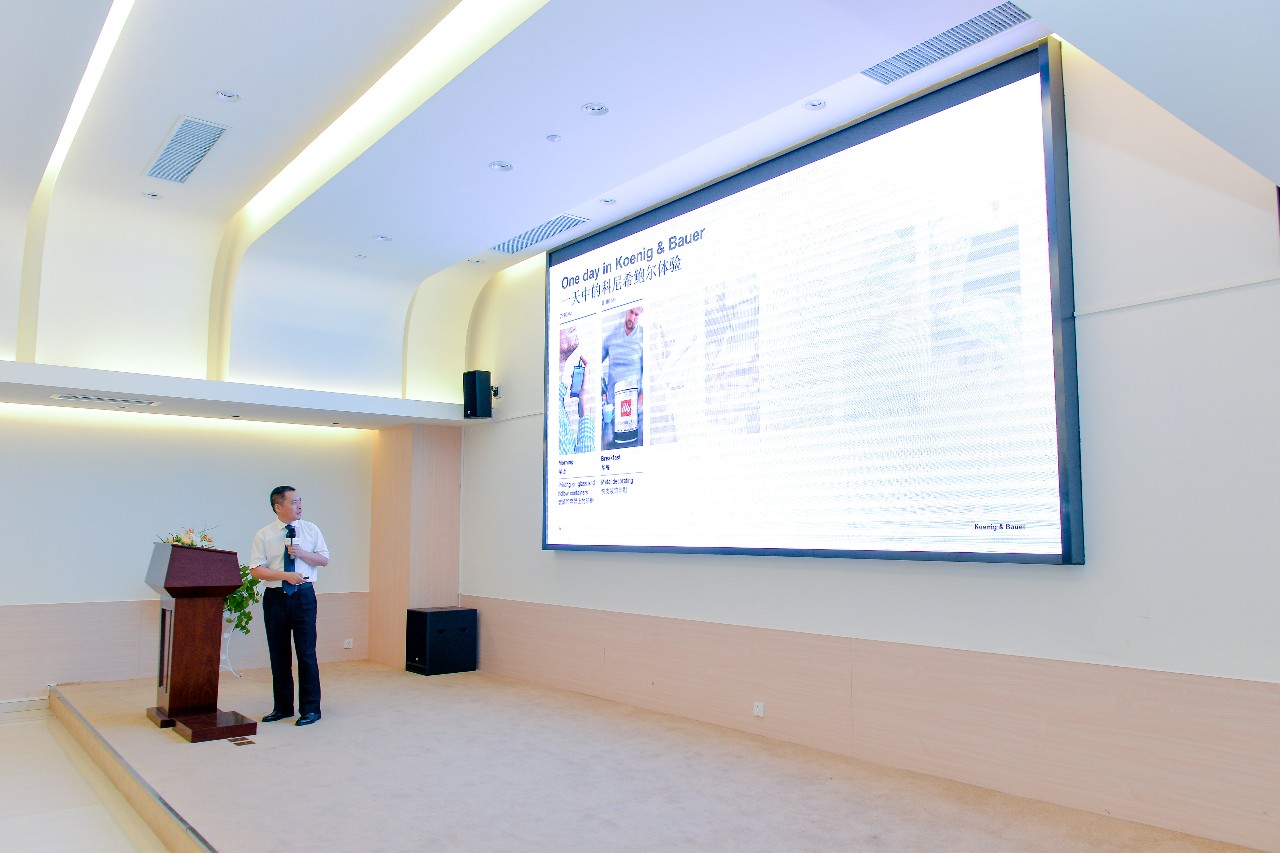 科尼希&鮑爾大中華區(qū)培訓中心的王榮生發(fā)表了題為《高寶智造,行穩(wěn)致遠》的精彩演講。邁進企業(yè)發(fā)展第三百年,高寶更名為科尼希&鮑爾,但不同的名稱,將帶給用戶同樣的精彩,科尼希&鮑爾將致力于成為全球印刷行業(yè)創(chuàng)新應用的引領者。王老師結合生動有趣的視頻展示,講述科尼希&鮑爾如何創(chuàng)新機械應用,幫助印刷業(yè)邁入增長量產的新時代。