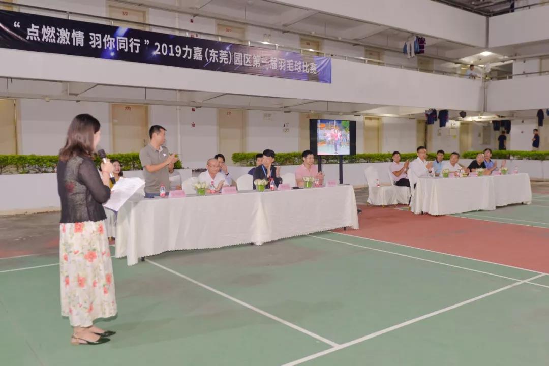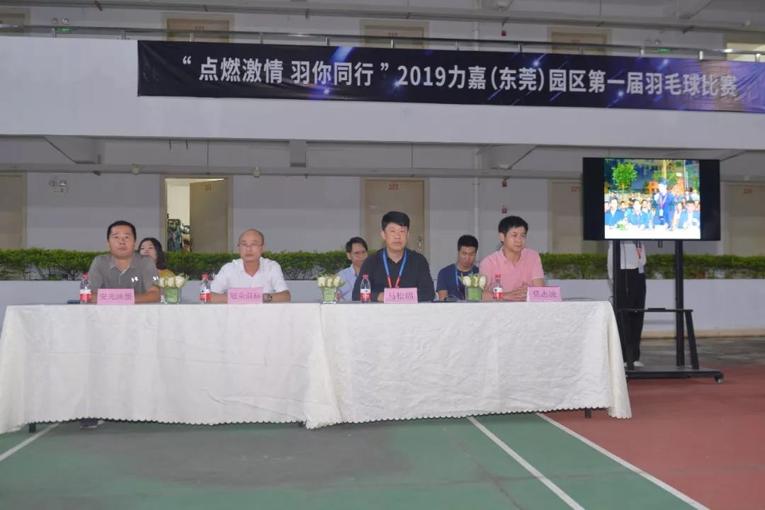 2019年10月11日,力嘉(東莞)園區(qū)第一屆羽毛球比賽開幕式在我園羽毛球場(chǎng)隆重舉行,橋頭鎮(zhèn)總工會(huì)副主席莫志波,力嘉國(guó)際集團(tuán)副總經(jīng)理馬楚力,董事長(zhǎng)助理、工會(huì)主席馬松綿,人事部經(jīng)理、工會(huì)副主席貝宇,園區(qū)入駐企業(yè)高管以及參賽選手近百人共聚于此。